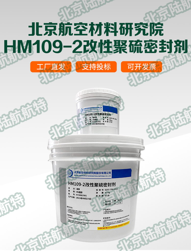 HM109-2改性聚硫密封剂是一种双组分、室温硫化的弹性密封材料。能与飞机常用的材料,如铝合金、不锈钢、复合材料、玻璃等形成牢固的化学粘接。具有良好的耐久性,适合户外及大气环境下的长期使用。