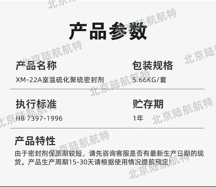 材料标准:HB 7397-1996(XM22室温硫化聚硫密封剂》;国外相近材料技术标准为Ty381051436-88《Y30M9C-5M聚硫密封剂》。