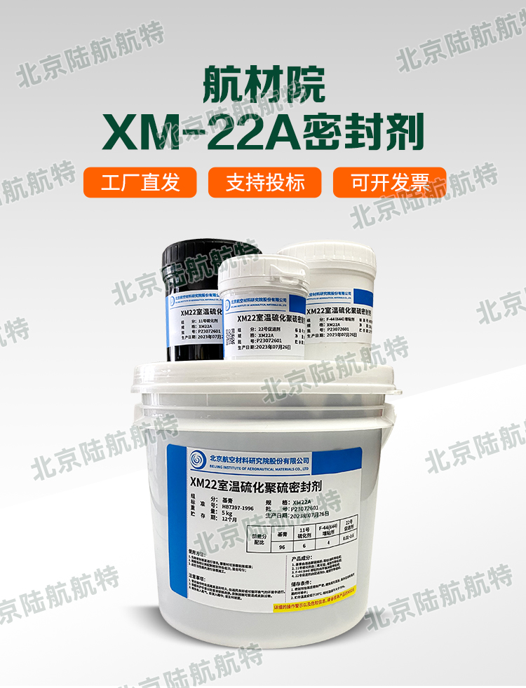 XM22密封剂在室温或加温下可硫化成弹性体,对阳极化铝合金、锌锌钝化钢和镀铬钢有良好的粘接性能,在NJD-1粘接底涂的作用下与S06-1010H聚氨酯防腐底漆有良好的粘接力,经航空喷气燃料、海水、淡水长期浸泡和湿热空气作用后粘接力稳定。主要用于飞机整体油箱、水上飞机水密结构系统的密封。长期使用温度为-55~110°C,可在130°C短期使用。