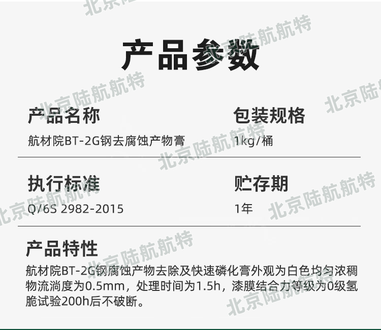 BT-2G 钢腐蚀产物去除及快速磷化膏外观为白色均匀浓稠物,流淌度为0.5 mm,处理时间为1.5h,漆膜结合力等级为0级,氢脆试验200h后不破断。该结果说明,BT-2G可以作用于任何位置和状态的零部件表面而不会流淌。
